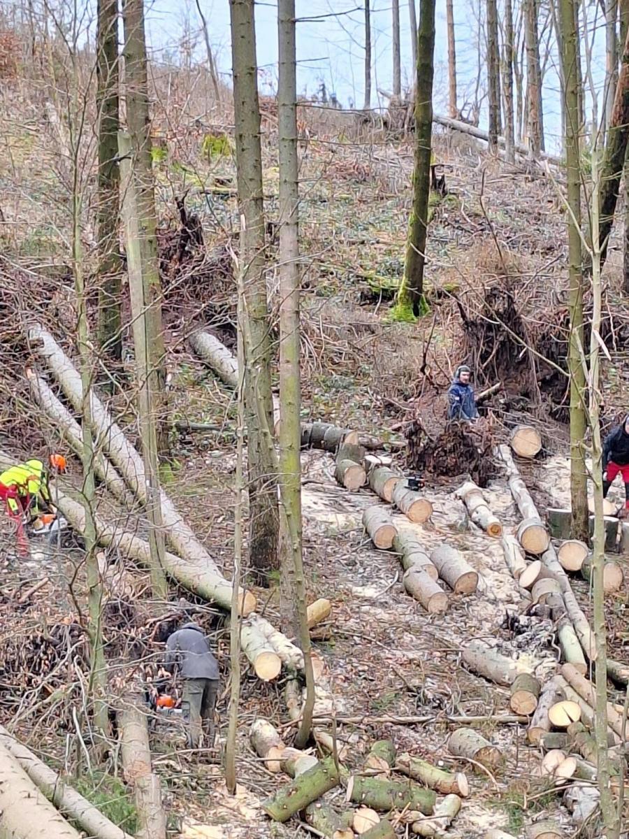 Am 17. und 18. Februar waren an der DH-Strecke Kettensägen zu hören, aber nicht wie gewohnt zum Anfeuern, sondern zum Zerlegen umgestürzter Bäume. Mit ca. 10 Personen wurden die Bäume im Bereich um die Fankurve sowie der alpinen Skistrecke des WSV in transportable Stücke gesägt und in den angrenzenden Wald abtransportiert.
