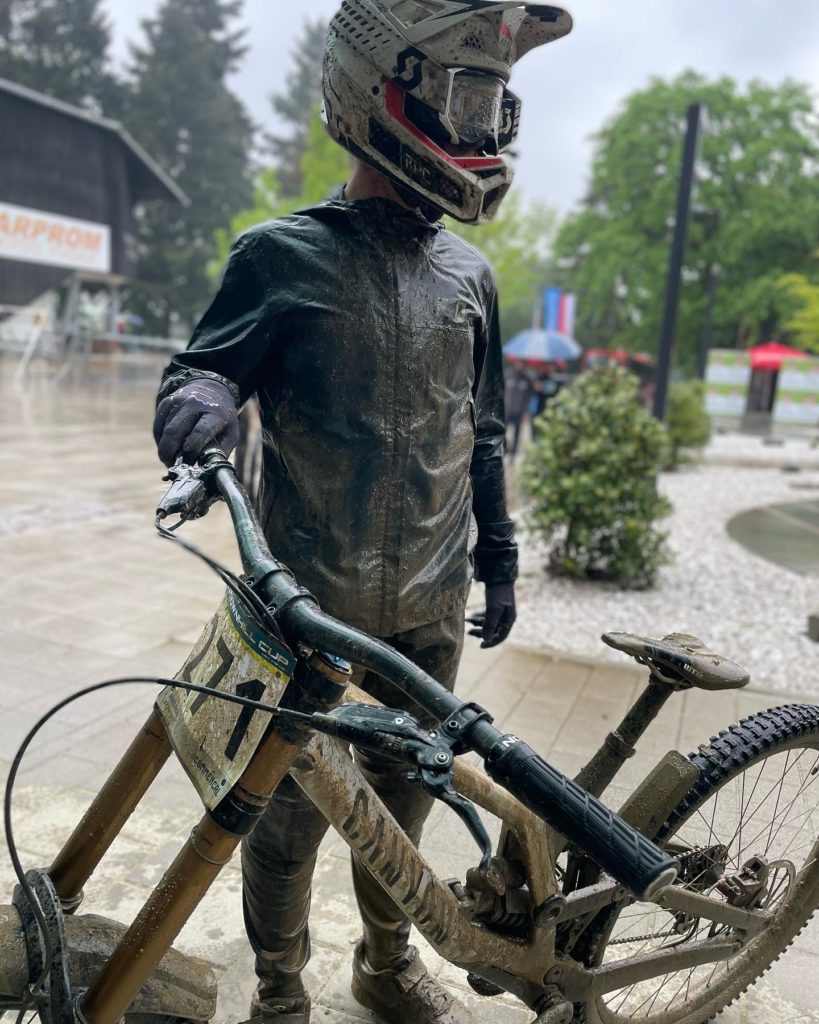 Am Sonntag hörte es endlich auf zu regnen, was jedoch die Bedingungen noch schlechter machte. Der Boden fing an zu kleben und es fuhren sich tiefe Rillen hinein. Jetzt hieß es, irgendwie auf dem Bike bleiben und trotzdem alles geben. Mein Final-Run war mit Abstand der wildeste, den ich je gefahren bin. Die Bedingungen waren absolut extrem und es gab Momente, in denen ich dachte, jetzt ist es vorbei. Im Steinfeld kam ich von meiner Line ab und blieb an einem Stein hängen. Doch dank meiner guten Vorbereitung und des guten Materials konnte ich dennoch ein sehr gutes Rennen fahren.