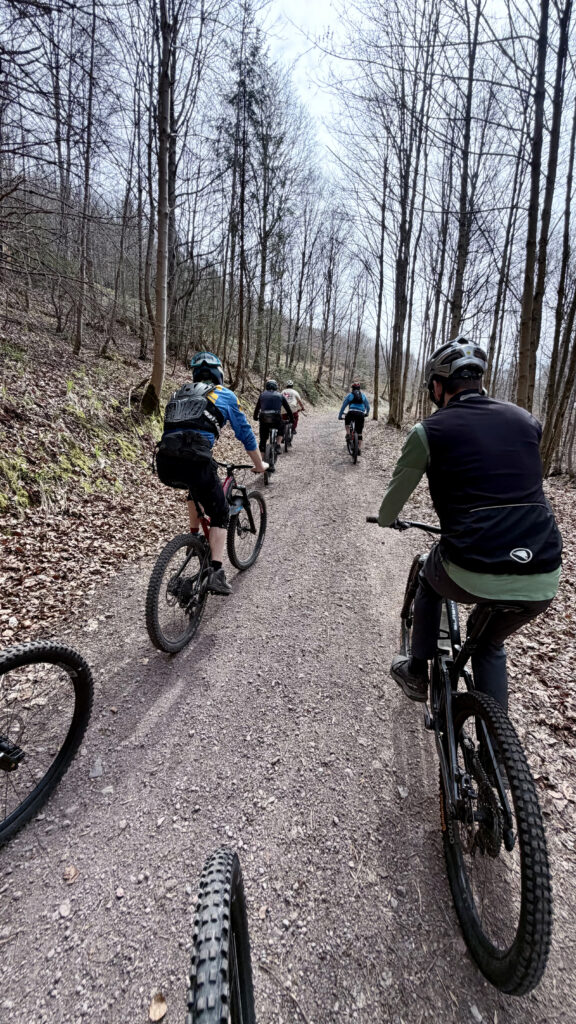 Ab 12 Uhr füllte sich das Gelände an der Vereinshütte, und pünktlich um 13 Uhr rollten die Gruppen in den drei Kategorien Enduro, Rennrad und XC los. Über den Tag verteilt nutzten rund 100 Teilnehmende den offenen Community Ride, um gemeinsam die ersten Kilometer der Saison unter die Räder zu nehmen. Vom ambitionierten Racer bis zur entspannten Genussfahrerin war alles vertreten – ganz im Sinne des Mottos „für alle“.